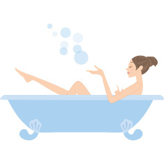 • Baia este o cale foarte plăcută și totodată eficientă de a folosi uleiurile prin relaxarea care o induce apa caldă și prin faptul că porii se dilată, pemițând uleiului să pătrundă prin tegumente. Uleiurile se adaugă înainte de a începe baia și nu mai devreme, deoarece datorită căldurii ele se evaporă foarte ușor. Astfel, pentru o baie se pun 4-6 picături de ulei esențial (sau 4-6 picături de amestec) în 2-3 linguri de lapte nedegresat sau 2 linguri de ulei de bază, apoi se toarnă în cadă și se amestecă bine. Baia va dura 10-20 minute.