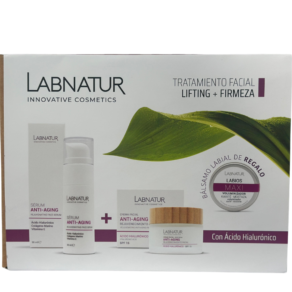 Descoperă setul complet Labnatur Tratamiento Facial Lifting + Firmeza, creat pentru a oferi pielii tale un efect anti-îmbătrânire vizibil și o senzație de fermitate sporită. Formula avansată cu Acid Hialuronic, Colagen Marin și Vitamina E acționează sinergic pentru a rehidrata profund țesuturile, pentru a netezi liniile fine și ridurile și pentru a reda elasticitatea naturală a feței. Fiecare produs din acest pachet a fost conceput pentru a lucra în echipă, oferind un ritual de îngrijire facială complet: Serul Anti-Aging intens concentratează principalii agenți activi, Crema Facială Anti-Aging cu SPF15 protejează împotriva efectelor nocive ale razelor UV și hrănește în profunzime, iar Balsamul de Buze Labios Max oferă hidratare și volum suplimentar, ca un bonus special din partea Labnatur. Cu un design modern al ambalajelor și textura ușor de absorbit, acest set se adresează tuturor tipurilor de ten și poate fi integrat cu succes atât în rutina zilnică de îngrijire de dimineață, cât și în cea de seară. Ideal pentru persoanele care doresc un aspect luminos, piele fermă și o reducere a semnelor vizibile ale îmbătrânirii, Labnatur Tratamiento Facial Lifting + Firmeza este alegerea potrivită pentru un ten cu aspect tânăr și strălucitor în fiecare zi.